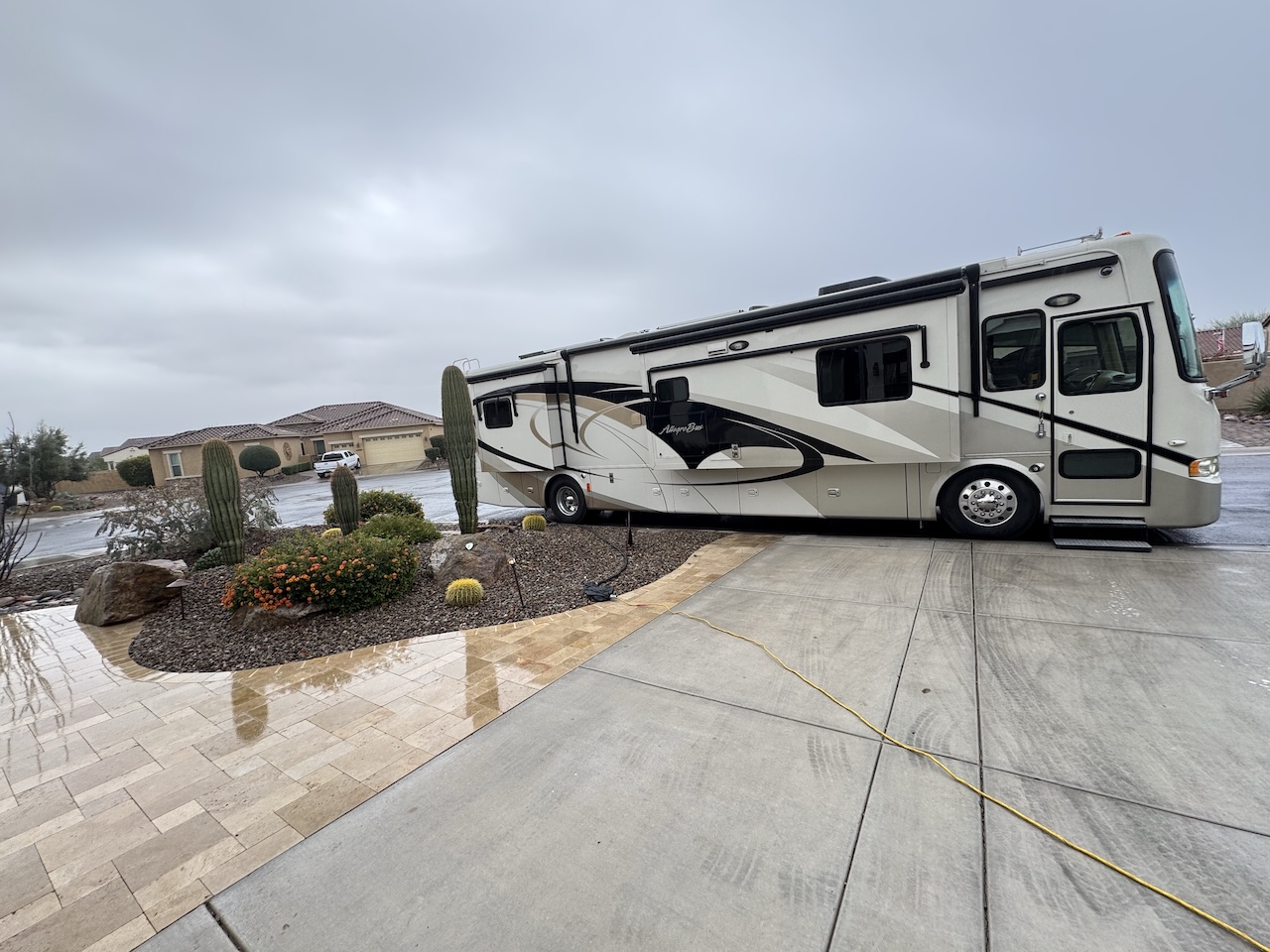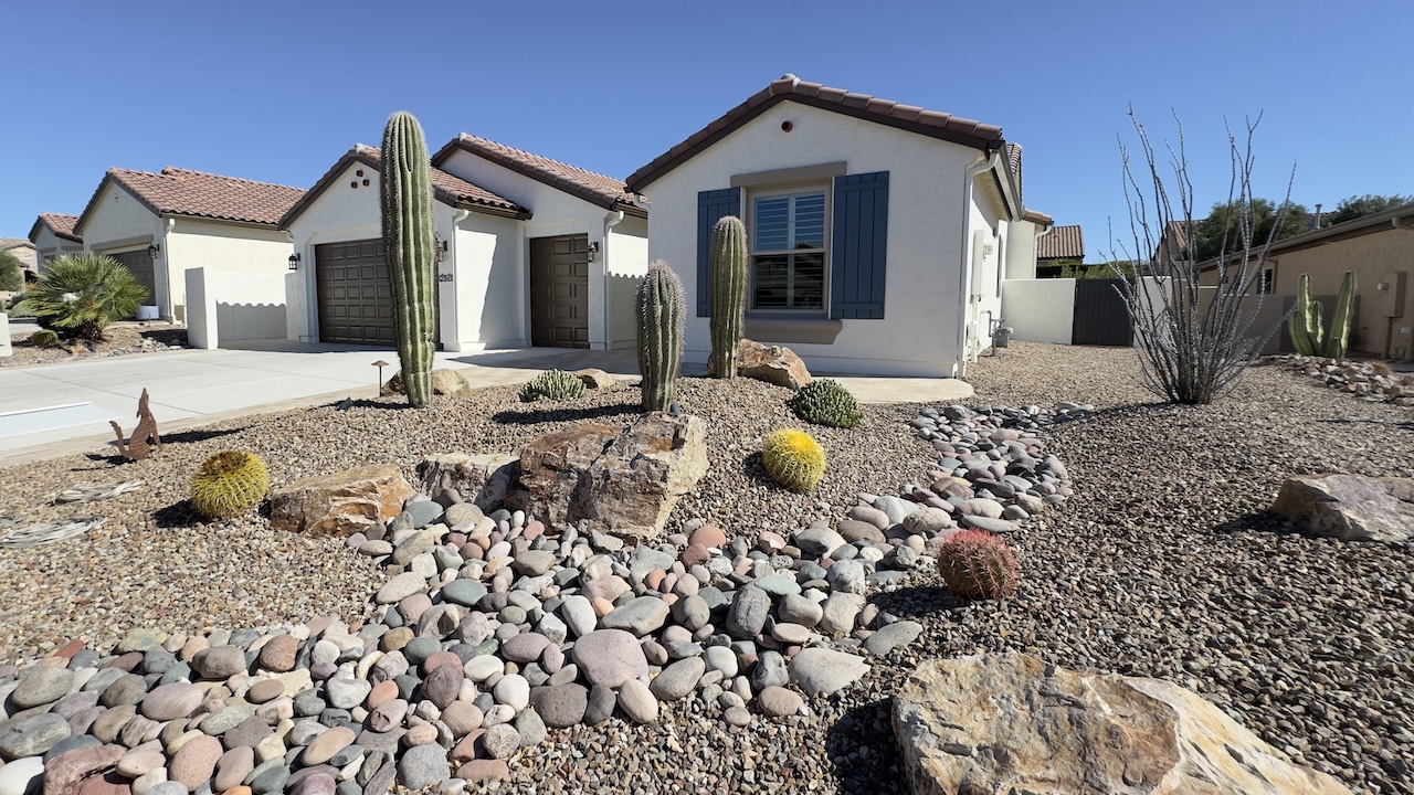After living full-time in a Motorhome for the last 20 years we thought it was time to buy a house. It is in a retirement community just north of Tucson, Arizona. We even have 3 Saguaro cactus in the front garden.