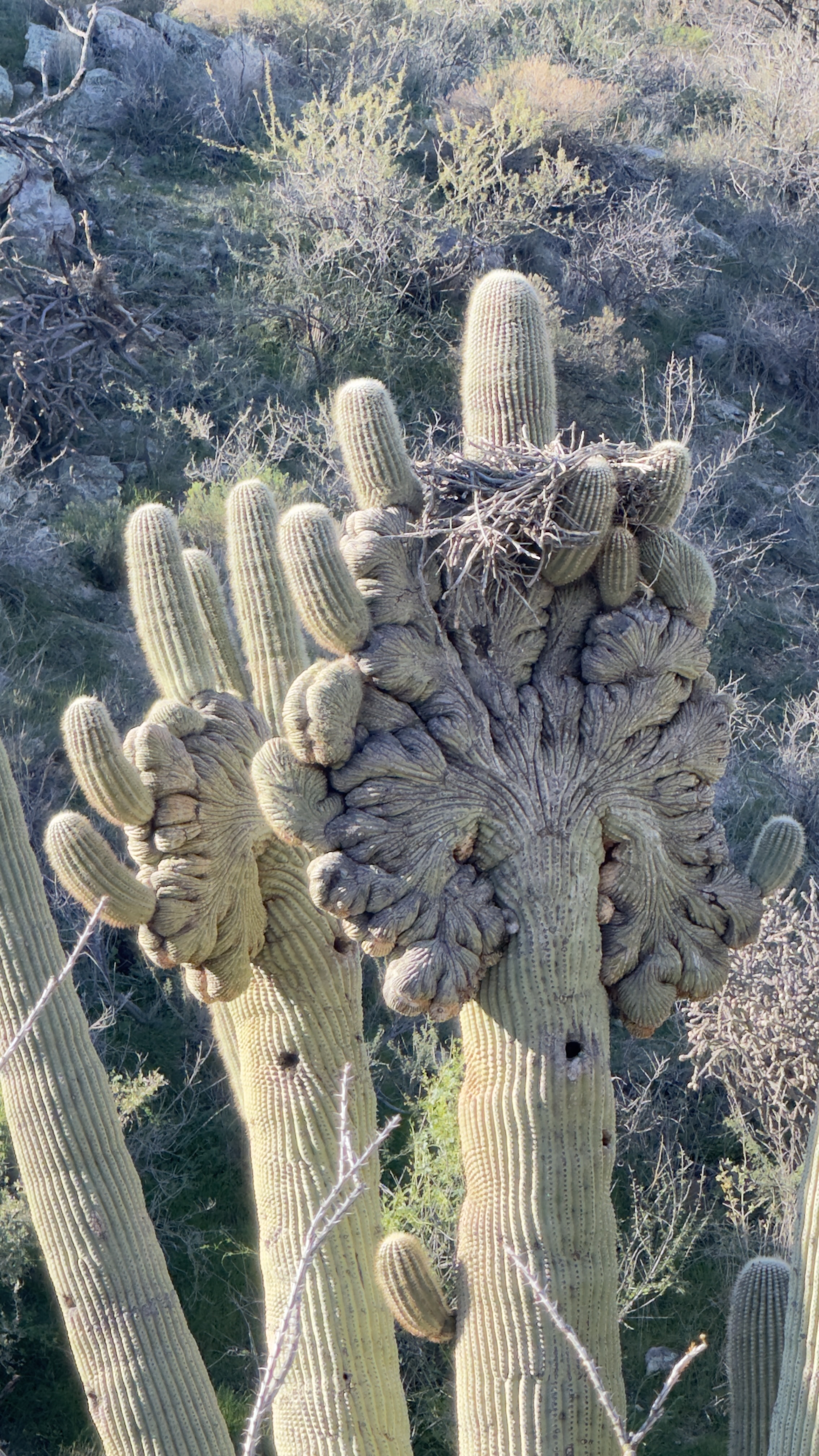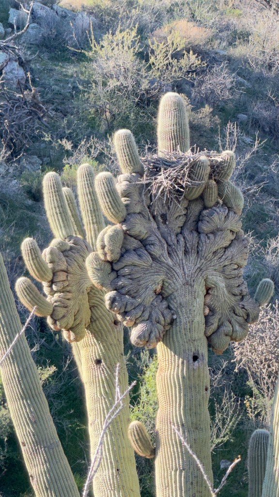 Crested Saguaros are quite rare. This one even had a birds nest.