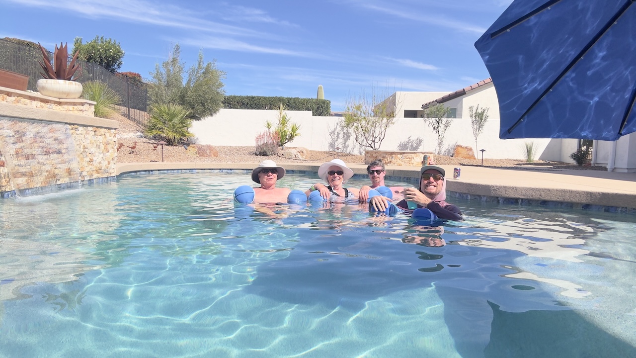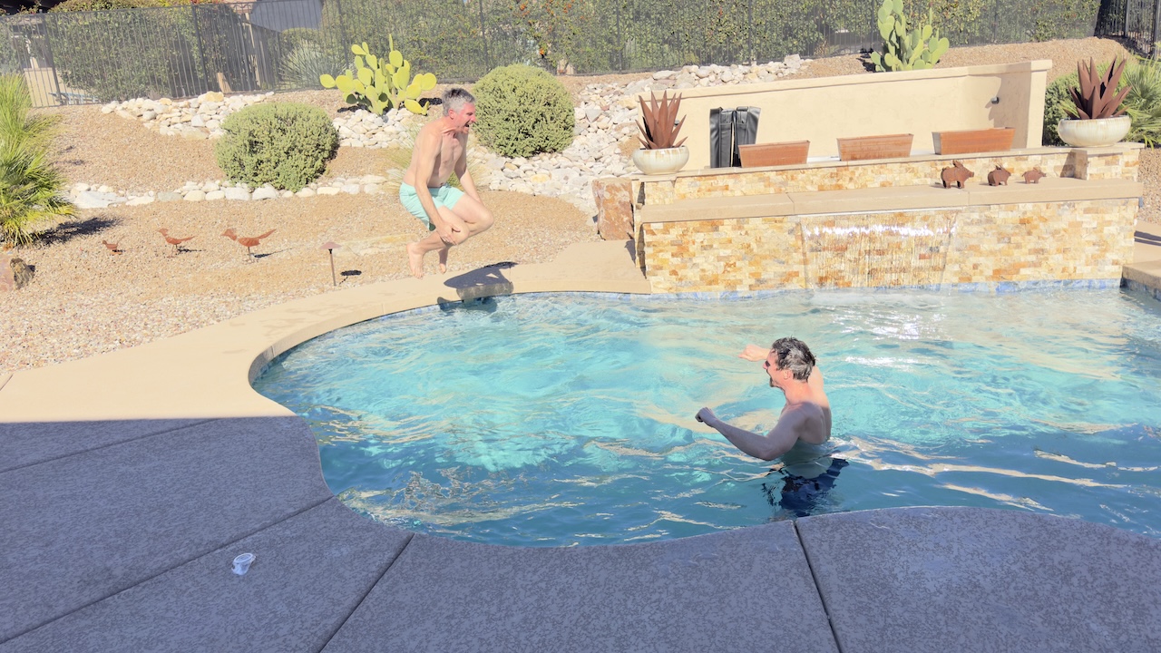 Dean heated the pool from 70 degrees up to 86 degrees so we could do some bobbing in comfort.