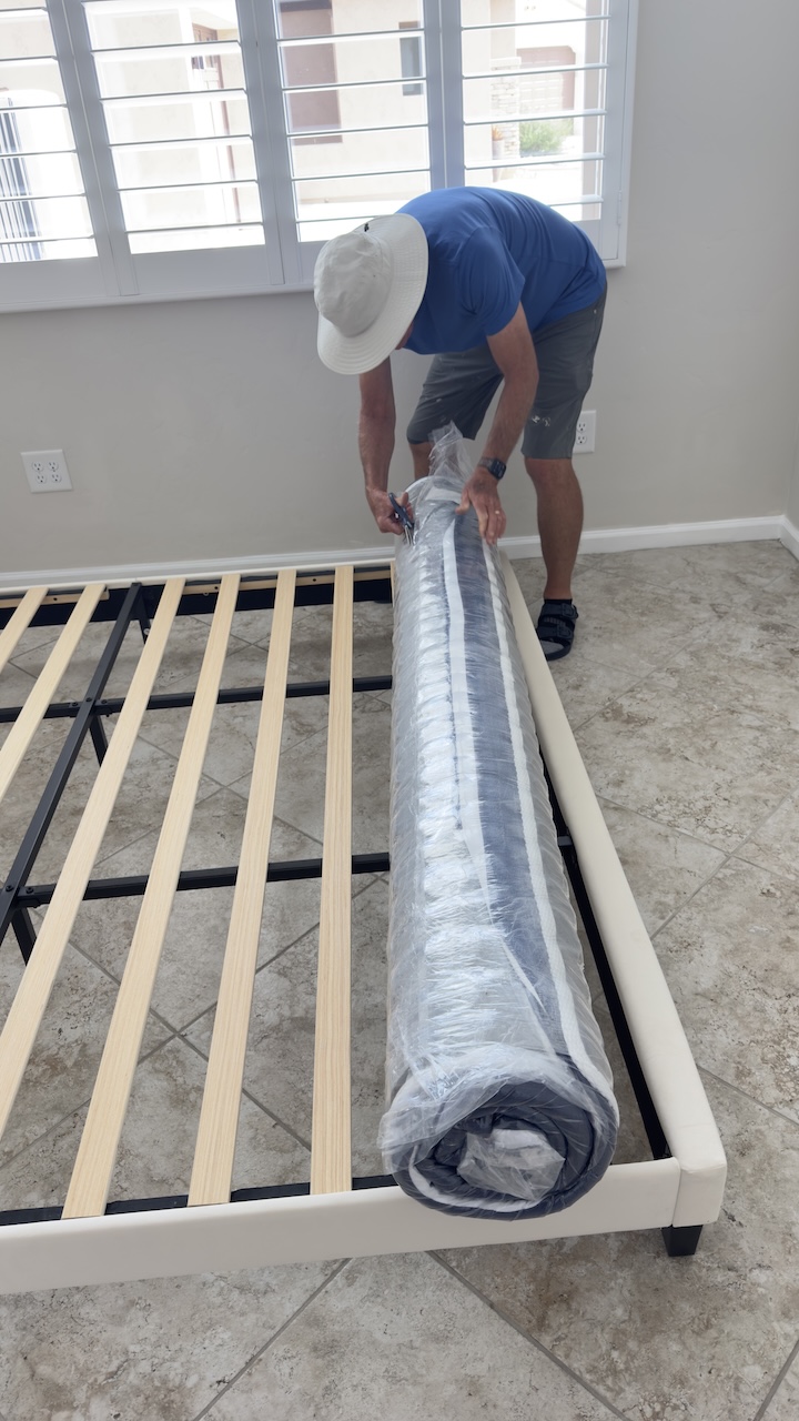 Third king bed unrolled and installed. Now we just have to get some bling to perk the place up. Thrift stores here we come.